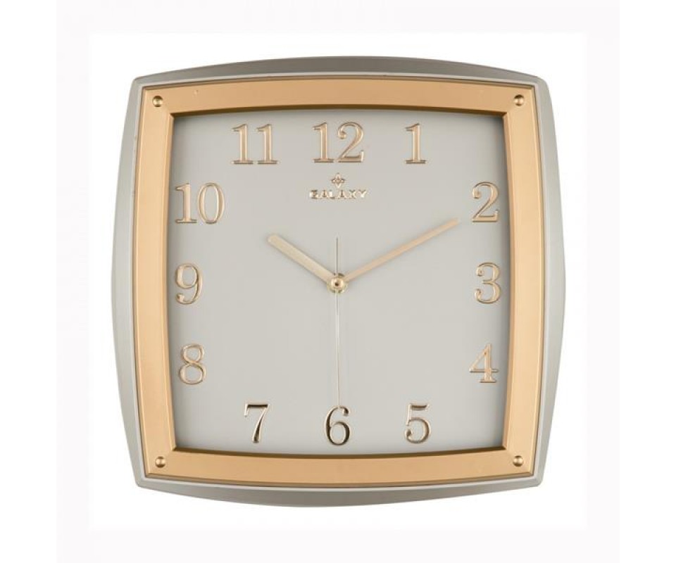 DUVAR SAATİ GRİ-ALTIN SARISI ÇERÇEVE ÇAP:31CMX31CM AKRİLİK BOYALI 2 RENK ABS KASA MİNERAL CAM SESSİZ AKAR MAKİNE VARAK BASKILI KABARTMA RAKAM KASA BASKI ALANI: 110MM
