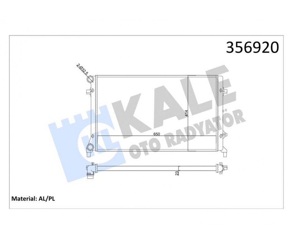 SU RADYATÖRÜ AUDI A3-SEAT ALTEA-LEON-TOLEDO III-SKODA OCTAVIA-YETI-VW CADDY III-EOS-GOLF V-VI-JETTA III-PASSAT-TOURAN 1.4 1.6 2.0 FSI 03 AT MT AC NAC MEKANİK 650x414x23 1K0121251DL-1K0121251AP