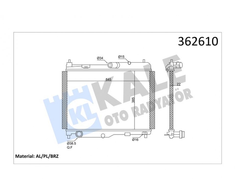 SU RADYATÖRÜ FORD ECOSPORT-FIESTA VII 1.0ECOBOOST 13 AT BRAZING 385x545x22 GN118005CB-GN118005CC-GN118005CD