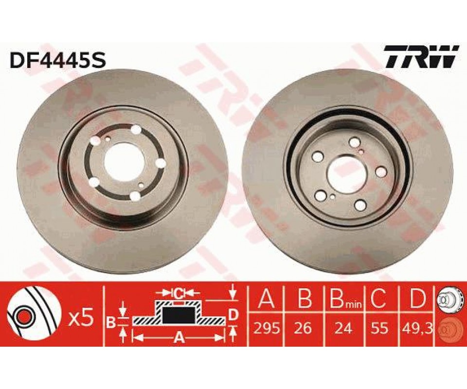 TRW ÖN FREN AYNASI ADET AVENSIS 2.4-2.0D-4D 03 COROLLA VERSO 1.8-2.0D-4D 04 295x26x5DLxHAVALI En cazip fiyatlar ile bakimsetim.com 'da satışa sunulan TRW DF4445S TRW stok kodlu ÖN FREN AYNASI ADET AVENSIS 2.4-2.0D-4D 03 COROLLA VERSO 1.8-2.0D-4D 04 295x26x5DLxHAVALI , müşterilerimize en güvenli şekilde en hızlı kargo ile teslim edilmektedir. Bakimsetim.com TAB Ticaret markasıdır.