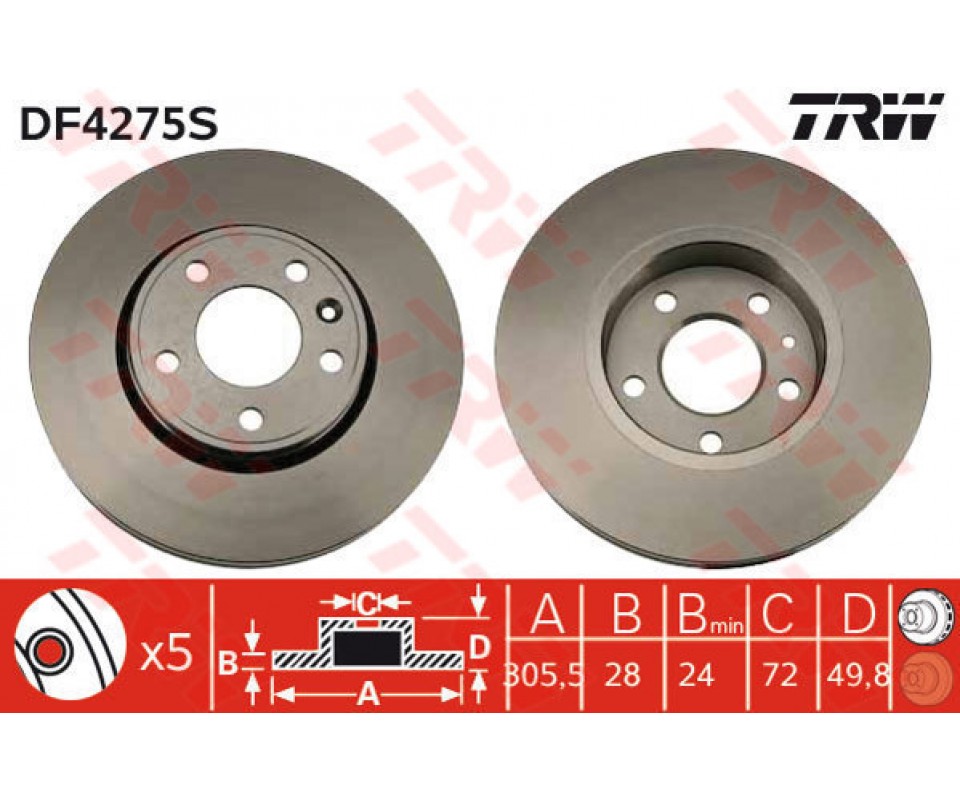 TRW ÖN FREN DİSKİ RENAULT TRAFIC 01 OPEL VIVARO 01 NISSAN PRIMASTAR 01 1.9dCi 2.5dCi 305x28x 5 BİJON En cazip fiyatlar ile bakimsetim.com 'da satışa sunulan TRW DF4275S TRW stok kodlu ÖN FREN DİSKİ RENAULT TRAFIC 01 OPEL VIVARO 01 NISSAN PRIMASTAR 01 1.9dCi 2.5dCi 305x28x 5 BİJON , müşterilerimize en güvenli şekilde en hızlı kargo ile teslim edilmektedir. Bakimsetim.com TAB Ticaret markasıdır.